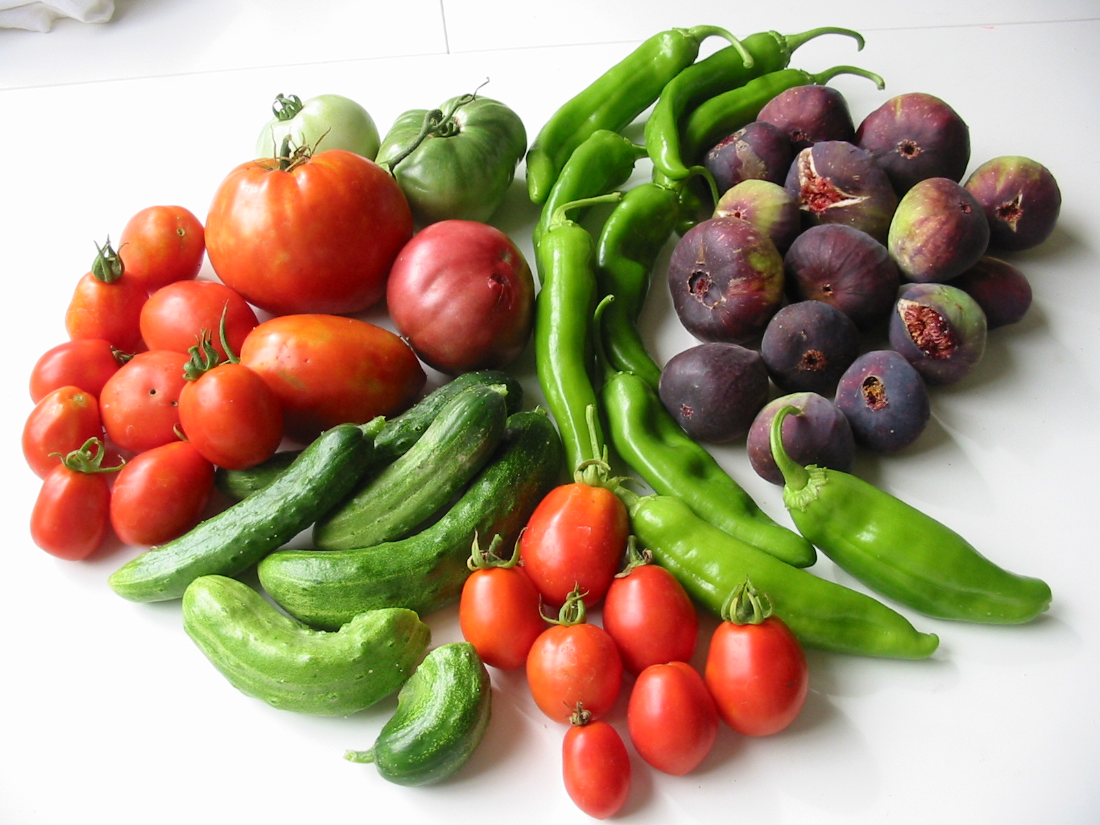 Our Garden was pretty successful this year. This abundance is coming from 7 raised beds, each 3'x8' in dimension, 1 psudo-raised bed constructed of round stepping stones put rows like cookies lined up on their ends in the herb garden. The fig tree is in the same area as the 7 beds and the Blackberries are draped on picket fences around the fruit trees. I hope our Garden does decently next year...I've started a few more cucumber and zucchini plants. I suppose it's a small gamble as fall is approaching soon. The beans are surprising me with another flush of blossoms, setting little baby beans. I've started some Romaine Lettuce in the shady areas, under Pepper plants, in the potted Wisteria (I'm betting on an educated guess, that the wisteria is a legume relative that fixes nitrogen), and some more lettuce under the fava beans shaded by the mandarine tree. I'm debating if I should clone some tomato plants because some of them have mites...the dreaded mights that devastated my crops last year.